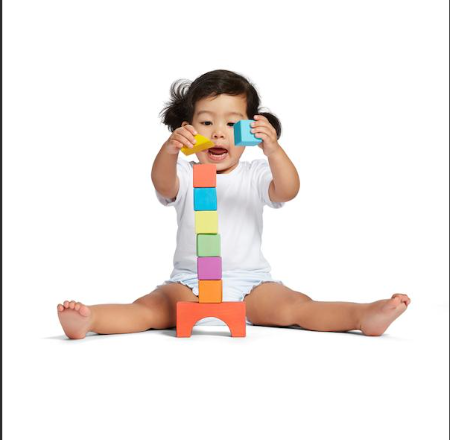 - Around 7 to 9 months babies show interest in 1” blocks by picking them up and banging them together